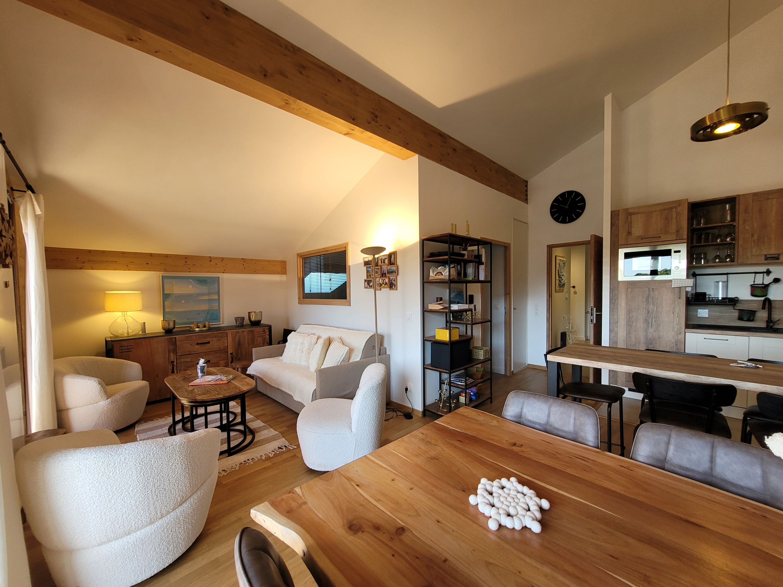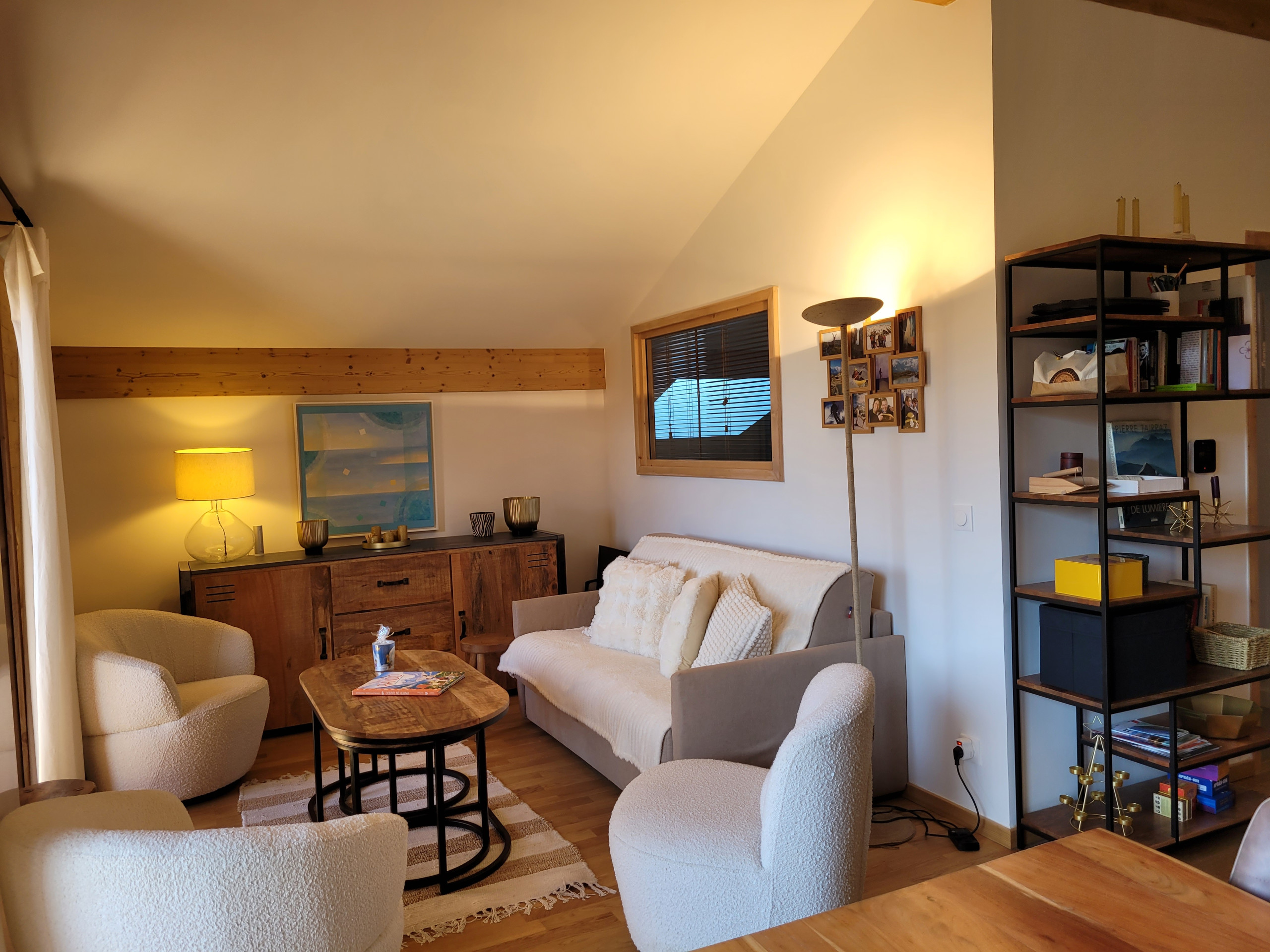 - Séjour avec 1 canapé, plusieurs fauteuils, TV et Wifi ; permettant un accès sur un spacieux balcon