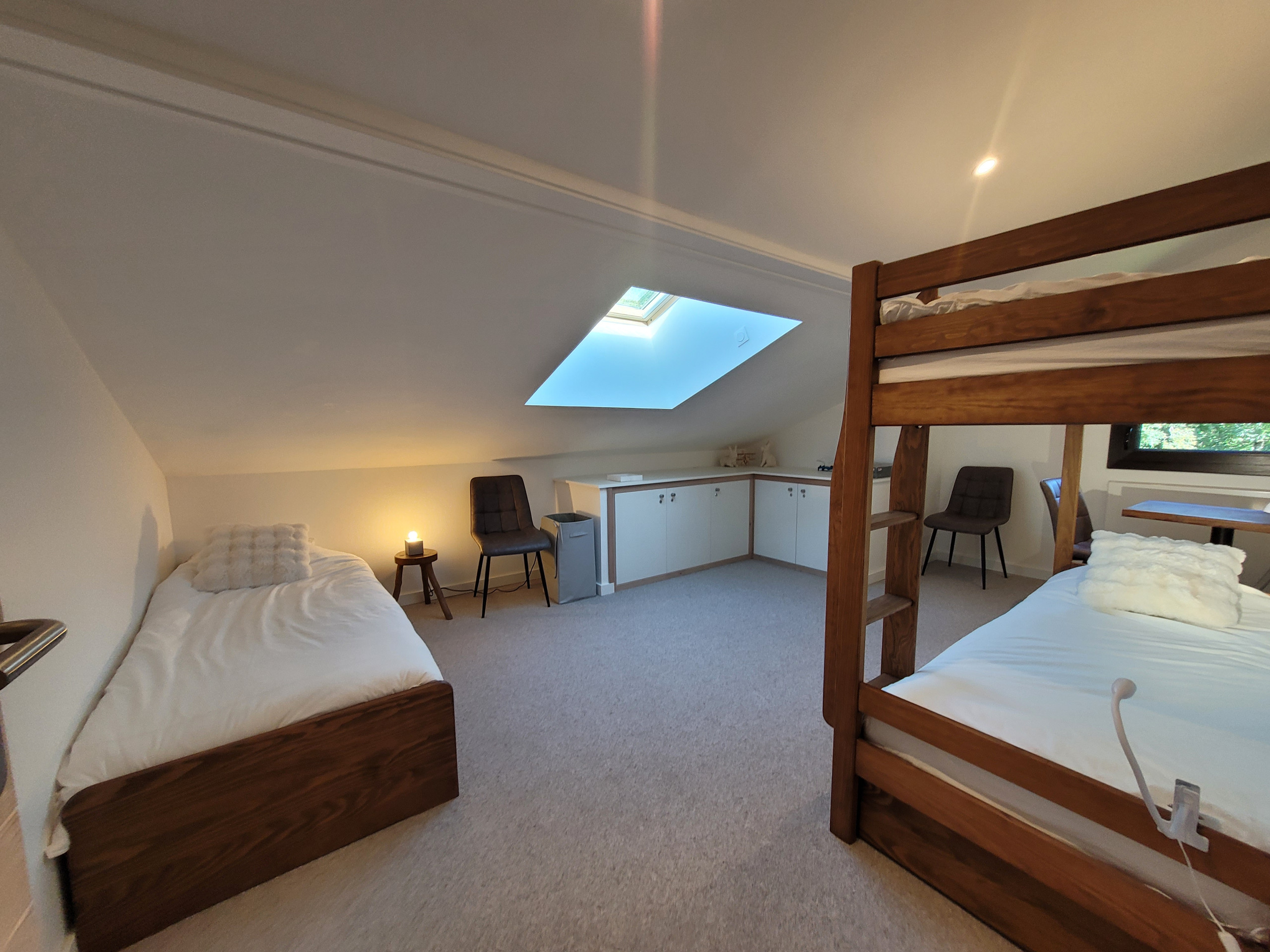 - Chambre (3) en suite avec 1 lit double de 160cm (1x 2 pers) et 1 lit simple (1x 1pers) et